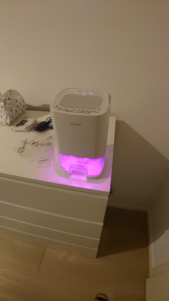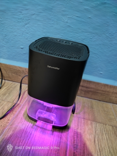The dehumidifier works perfectly; in the first two days of operation, it collected about 200ml of water—this is the humidity level in our apartment. Before this, we used all kinds of granules and ventilation, but it was not very effective. Now, with this device, I hope the results will be better. The dehumidifier operates quietly, has various operating modes and a night mode, for example, it's completely silent. It has a backlight and can also be used as a night light. I recommend it.