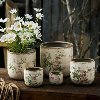 French Retro Vintage Pink Rose Ceramic Plant Pot