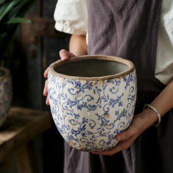 Chinese Antique Blue and White Ceramic Plant Pot