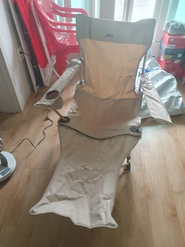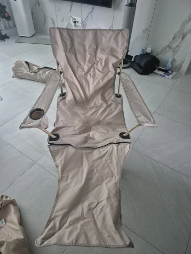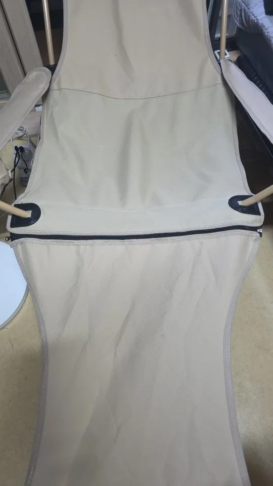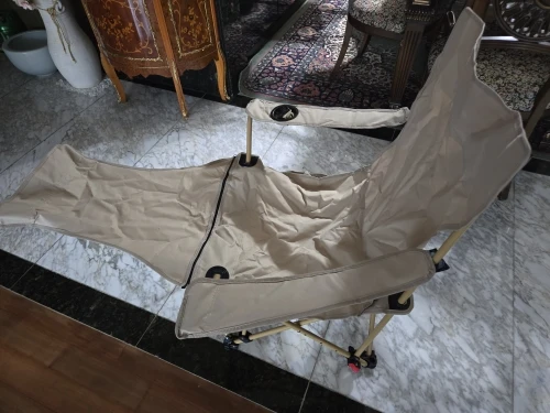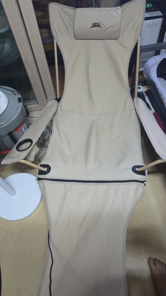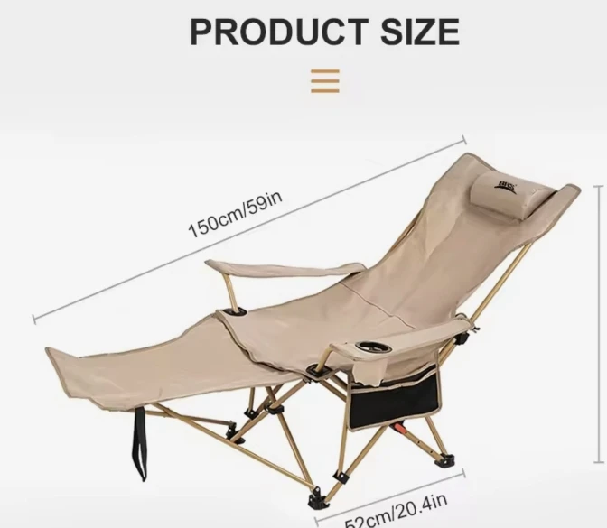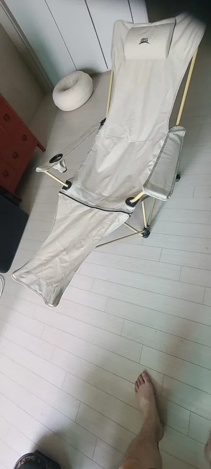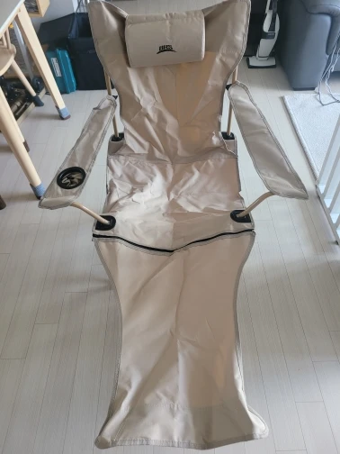 It's a regular camping chair... Equipped with a leg rest and adjustable backrest length. It seems useful for camping or fishing trips haha. However, the downside is that the metal part seems a bit weak!