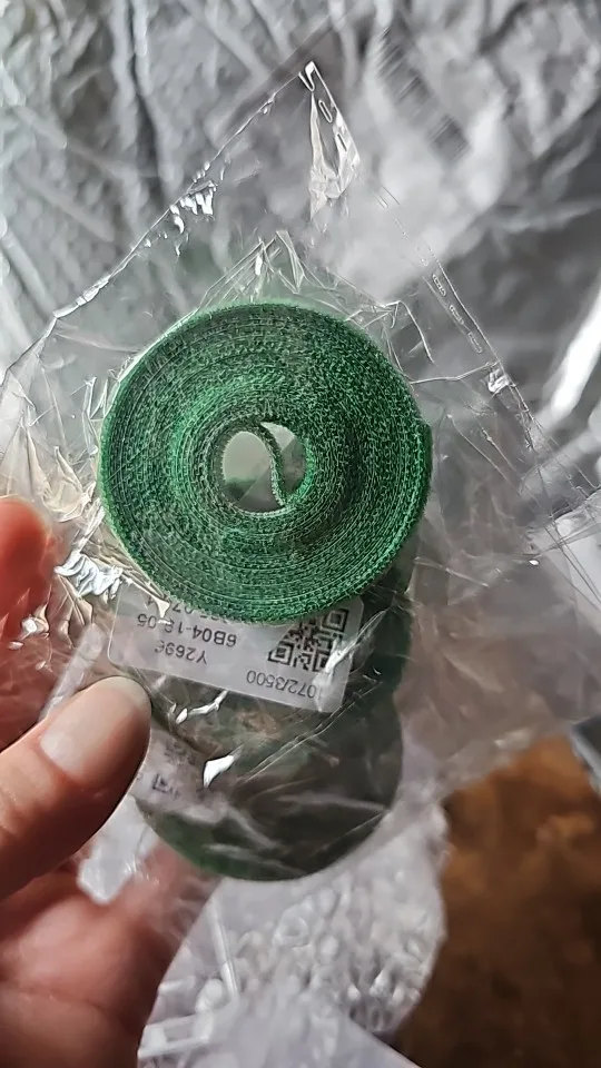 It's good working double sided "velcro". So it's not tape or something, but works perfect. The rolls are small so it's not for very heavy branches , but i.e tomato plants will work fine. Super fast shipping ! Only 4 days from china to the netherlands !