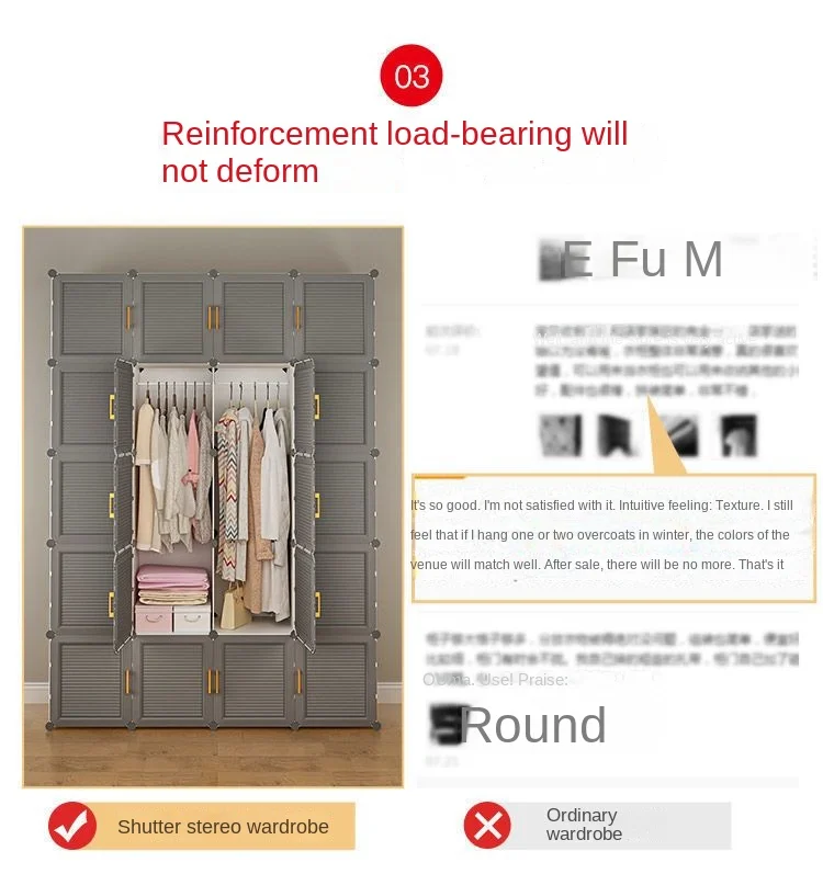 I have received the package. the wardrobe has a large interior space and good load-bearing capacity, which meets my needs very well. the quality is also very good, this is the effect i want.