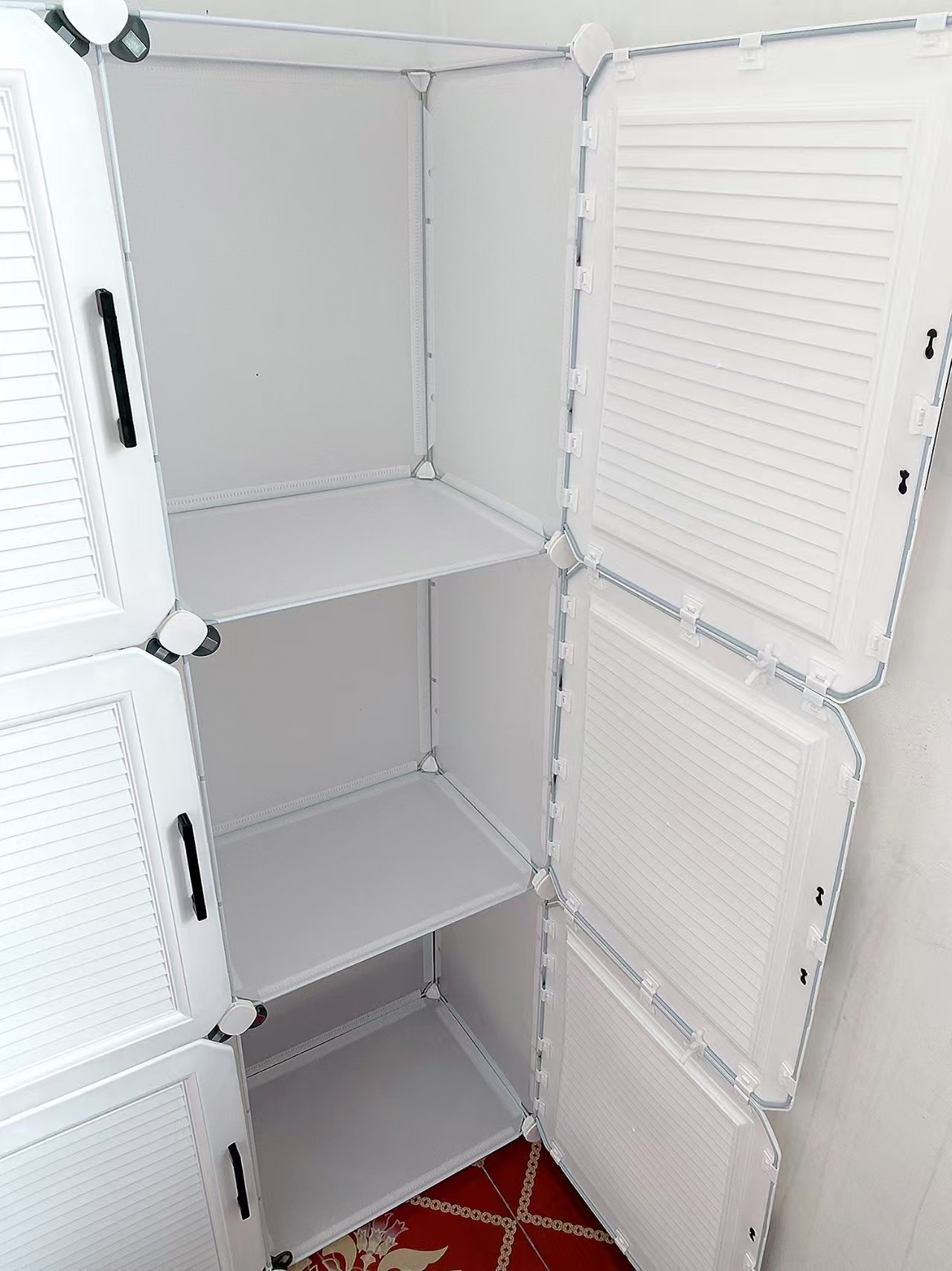 I’ve already received the item. It was very easy to assemble, and the overall quality is excellent. The shoe cabinet does a great job of keeping dust out, and there’s plenty of storage space inside. I’m very satisfied with it.