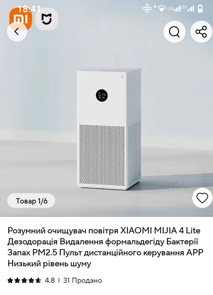 The device has a stylish minimalist design - a white perforated case looks good in a modern interior. It is compact, does not take up much space and is easily carried from room to room. Setup and launch were very simple: just connect the power, download the app, and connect the purifier via Wi-Fi. In the app, you can monitor air quality, adjust operating modes, and check filter status. This is very convenient, especially if there are children or people with allergies at home. The device operates quite quietly, even in night mode it's almost inaudible. The air in the room became much fresher, removing kitchen odors and dust. I also liked that there is an indicator on the case that shows the level of contamination. The only downside is that all stickers and instructions are in Chinese, had to look for a translation online. But overall, I am satisfied with the purchase and recommend this purifier for those who want to improve air quality at home.