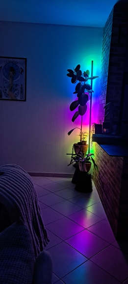 Wonderful pedestal lamp. Very beautiful, with many different styles to change and flickers with the rhythm of the music.