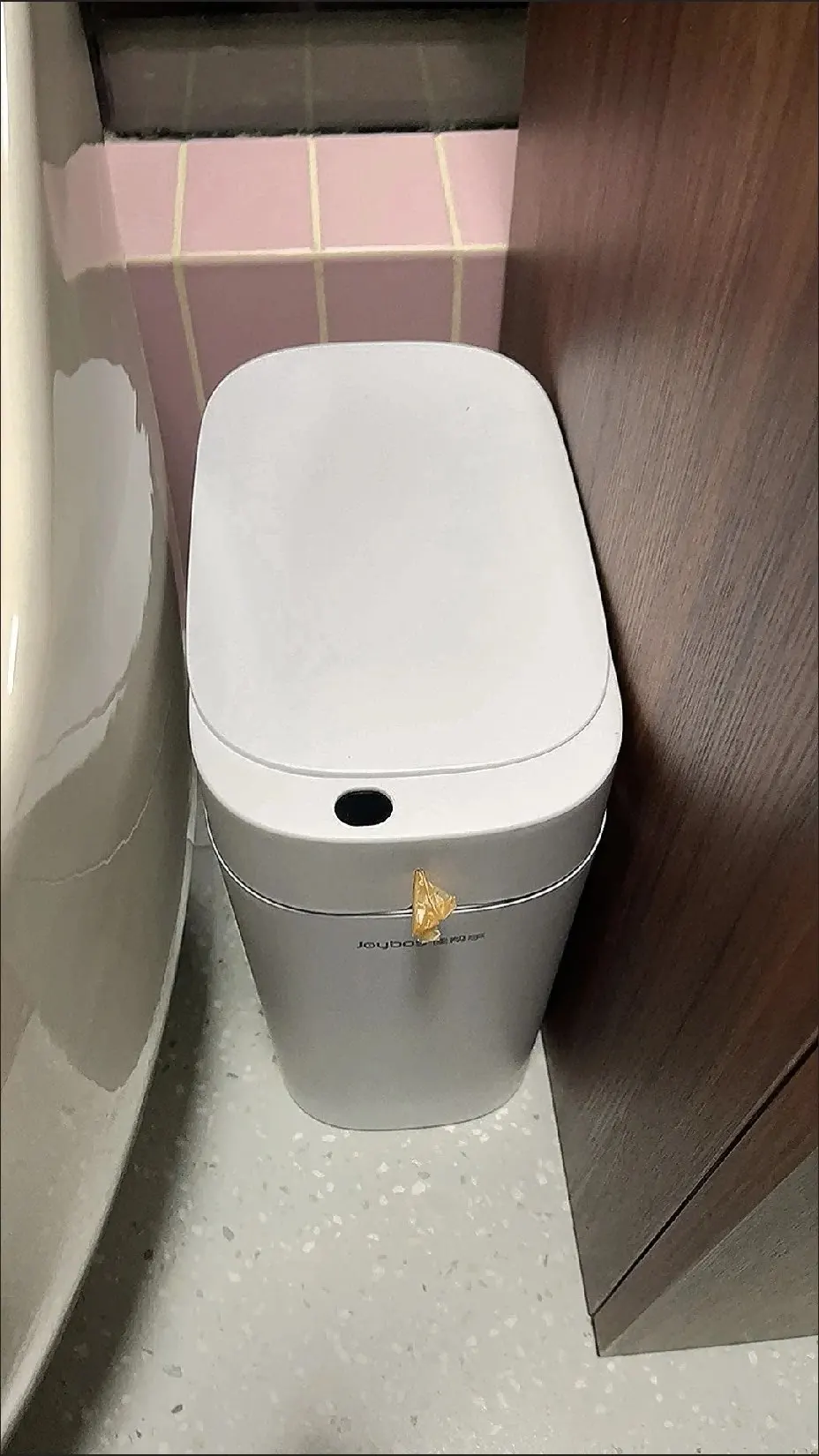 I really like this small trash can! It's especially useful for disposing of small amounts of trash. However, please note that it has a small capacity and can't hold a large amount. Still, the automatic lid works perfectly in most cases. The sensor is very sensitive, and I like the design. Especially the color is pretty! I'm very satisfied.