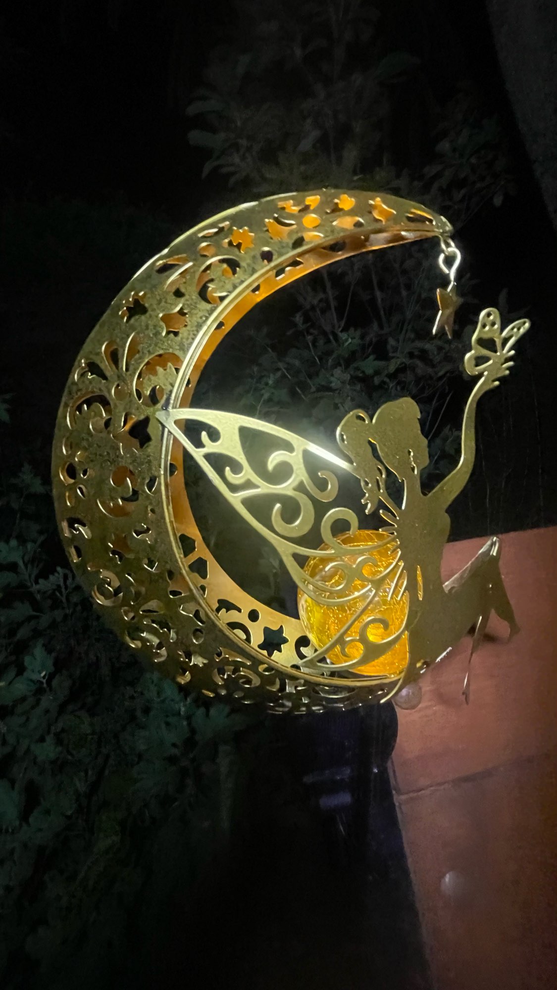 Pretty metal outdoor decoration. Doesn't illuminate enough to my liking for the price. Satisfied but not more than that.