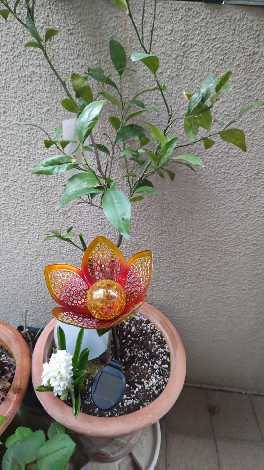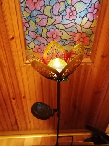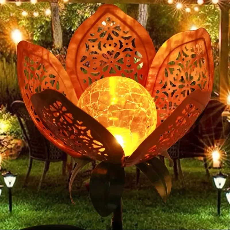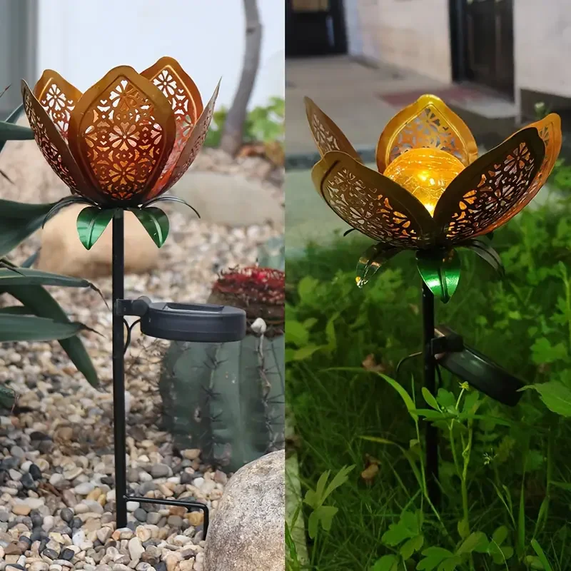 Solar Powered Metal Lotus Garden Stake Hollow Iron