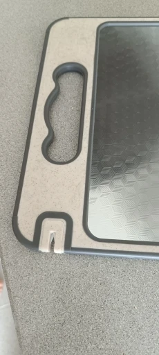 The cutting board is excellent. It's double-sided, and the front side is made of stainless steel, so there's no need to worry about fine plastic, and there's no discomfort at all when sharpening. The only downside is that there is a cutting board edge, so when chopping vegetables and putting them in the pot, it hangs over the chin.