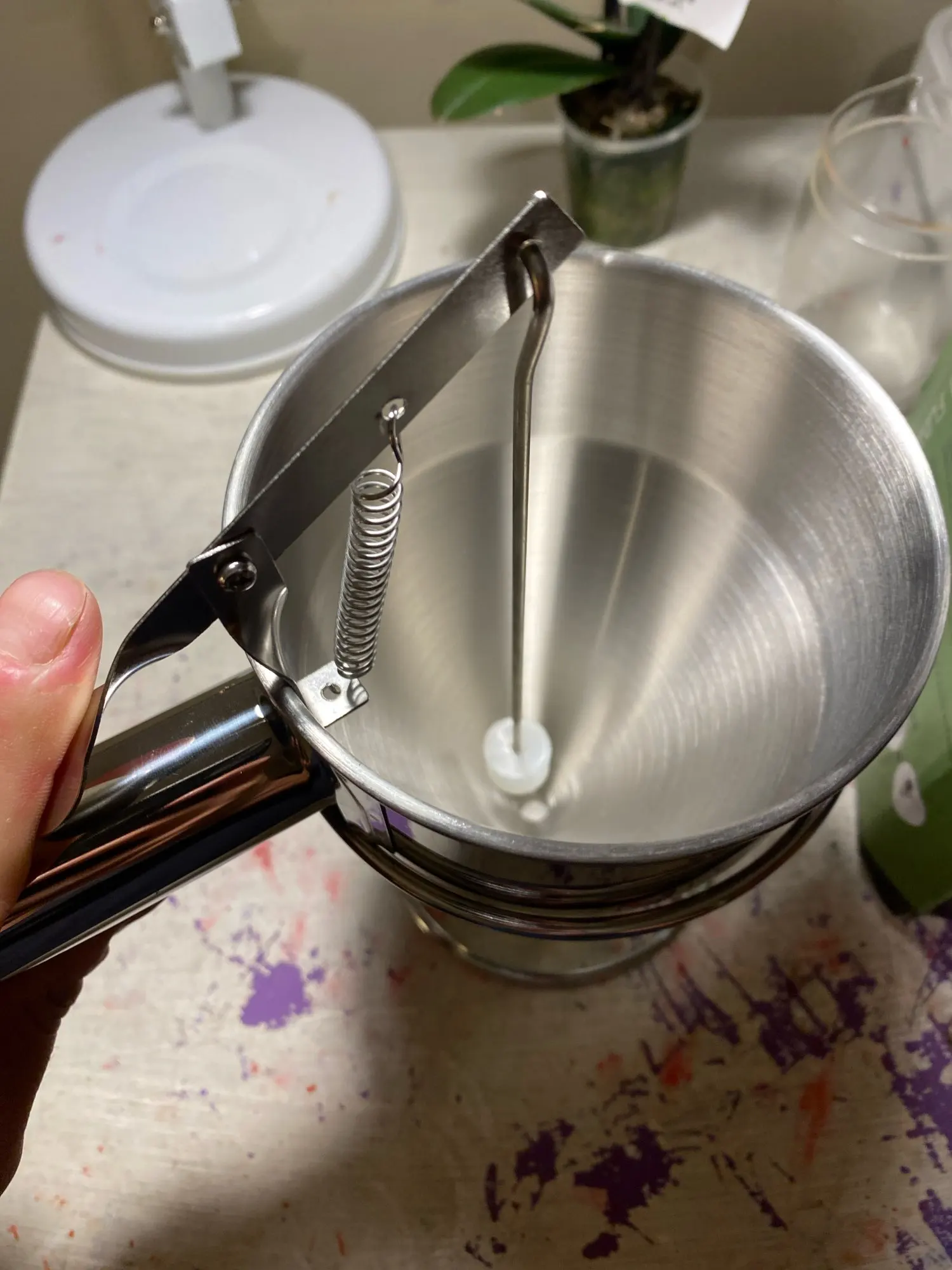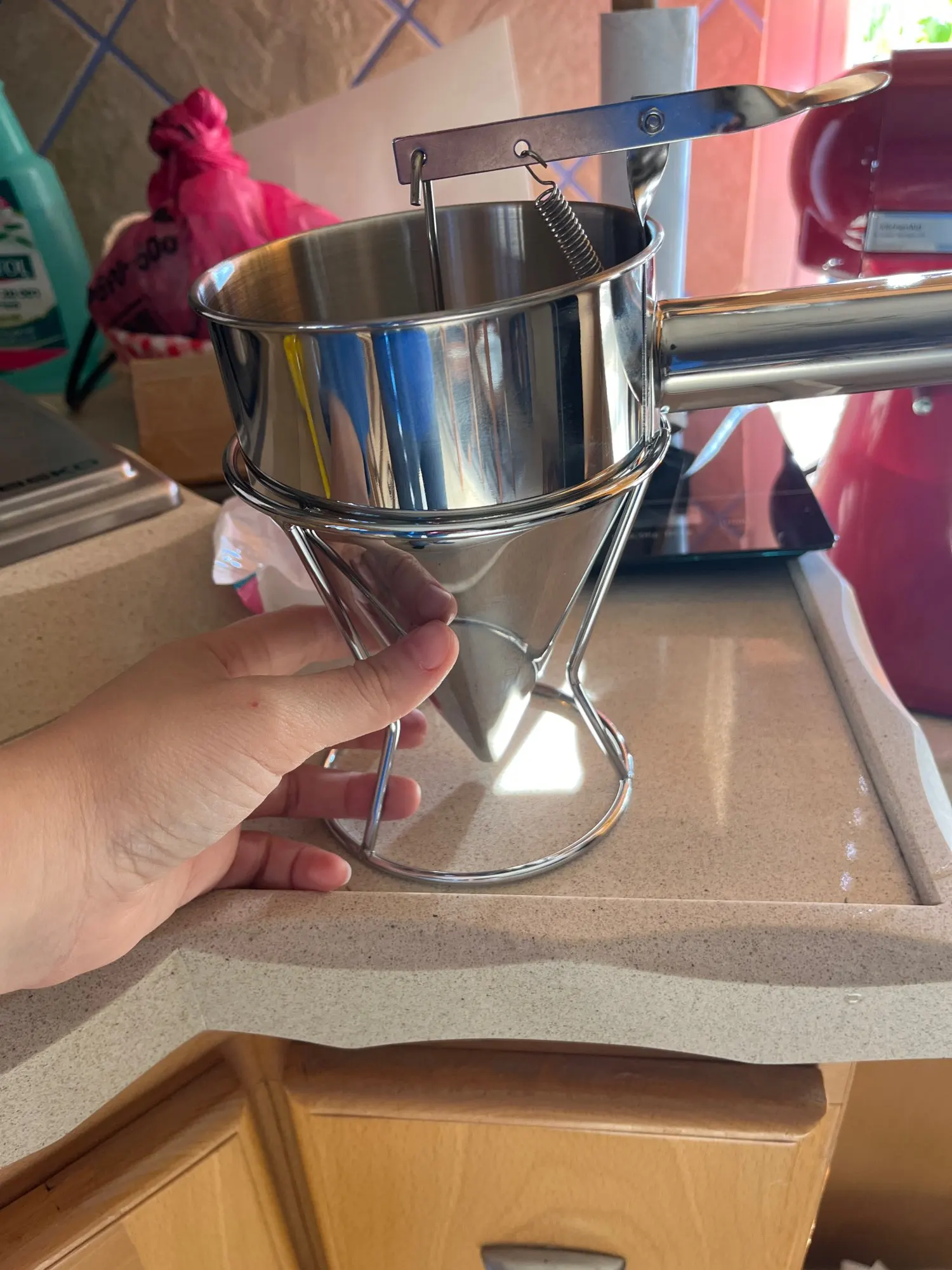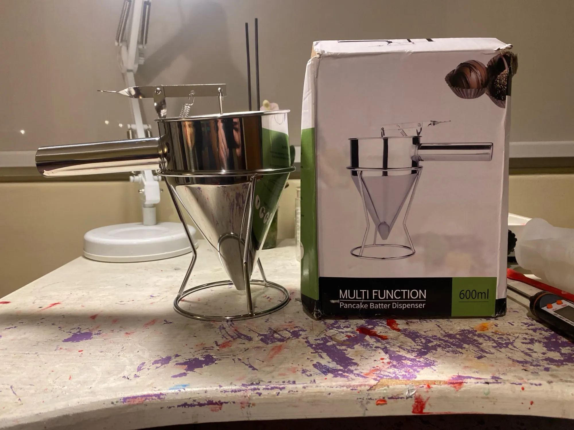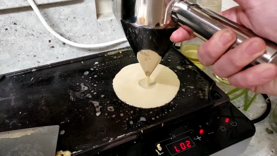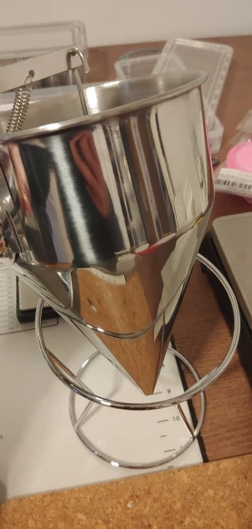 Absolute game changer for crepes and pancakes especially. I love that i don't have a pitcher globbing too much batter and dripping everywhere every time i try to put it back down. Dripped a bit until i realized after you finish dispensing put your thumb under it and push up with a little bit of force to really seat the plunger. Also definitely get the large size, the one in my pictures is the large and you can see that it's really not that big. I mean it's big enough that it holds enough batter that you can make 15 to 20 crepes so a liter of batter is pretty big of course but not what you imagine when you think commercial batter dispenser -size large. Also worked pretty well for watering my houseplants lol