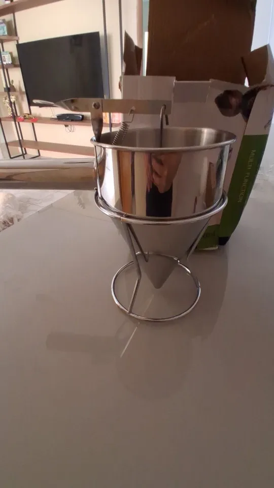 The funnel is made of food grade stainless steel metal, with exquisite workmanship and healthy use. The surface of the funnel wall is sanded to effectively prevent scratches. Using the shelf supplement, you can easily place and keep the kitchen clean. This high-quality practical funnel is very suitable for your baking, delicious dishes and desert. It is suitable for modern hotel kitchens, cake shops, bakeries, soda fountains, juice stores, etc.