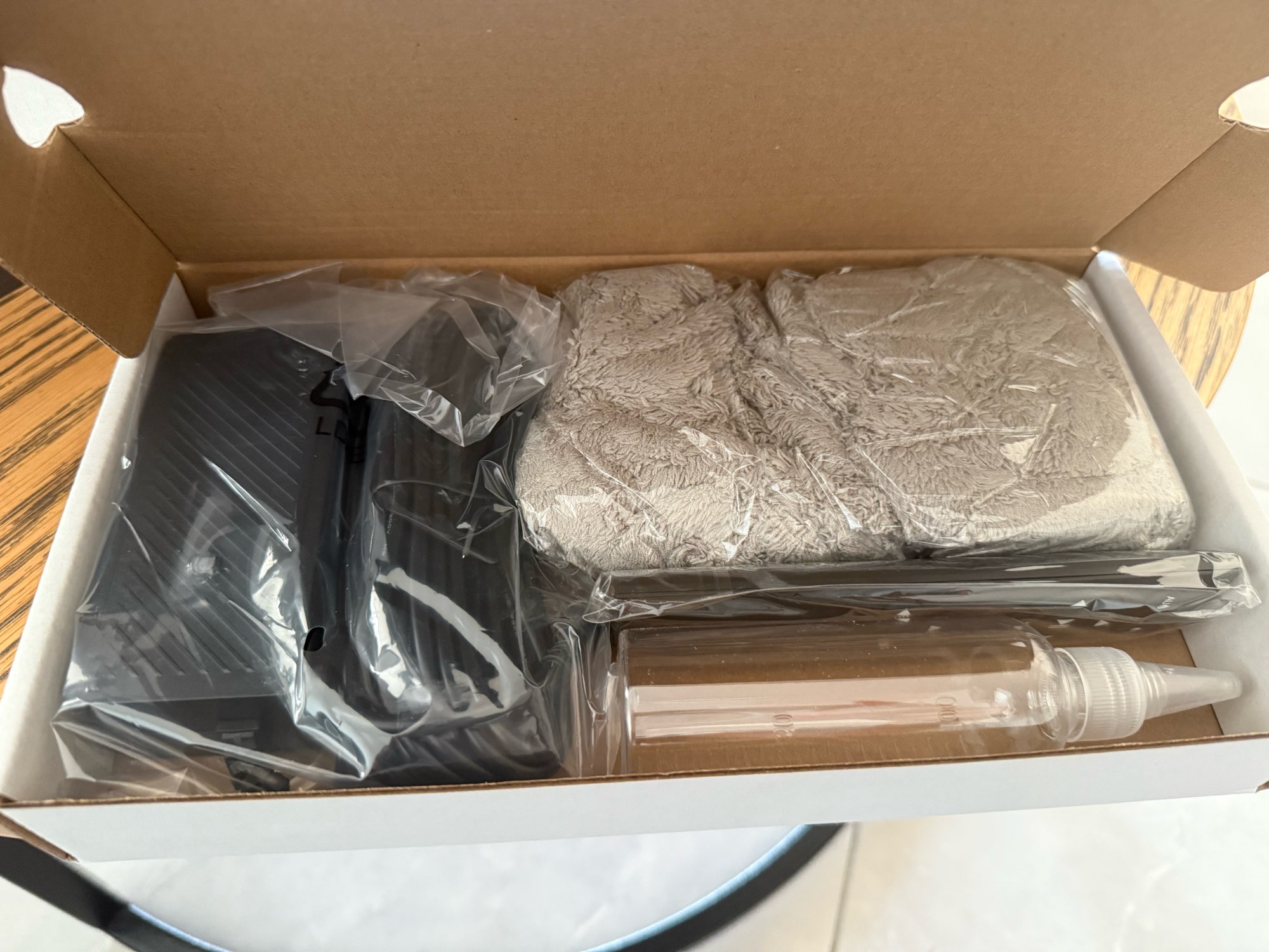 I'm really satisfied with it. However, there was a chemical smell from the fabric, so I washed it and used it right away. It seems like there's still some water left because of washing. I'll try using it a few more times, but for this price range, it's the best. Also, if you put glass cleaner in the nozzle, it might get clogged, so it would be better to just add water and spray the glass cleaner on the cleaning cloth.