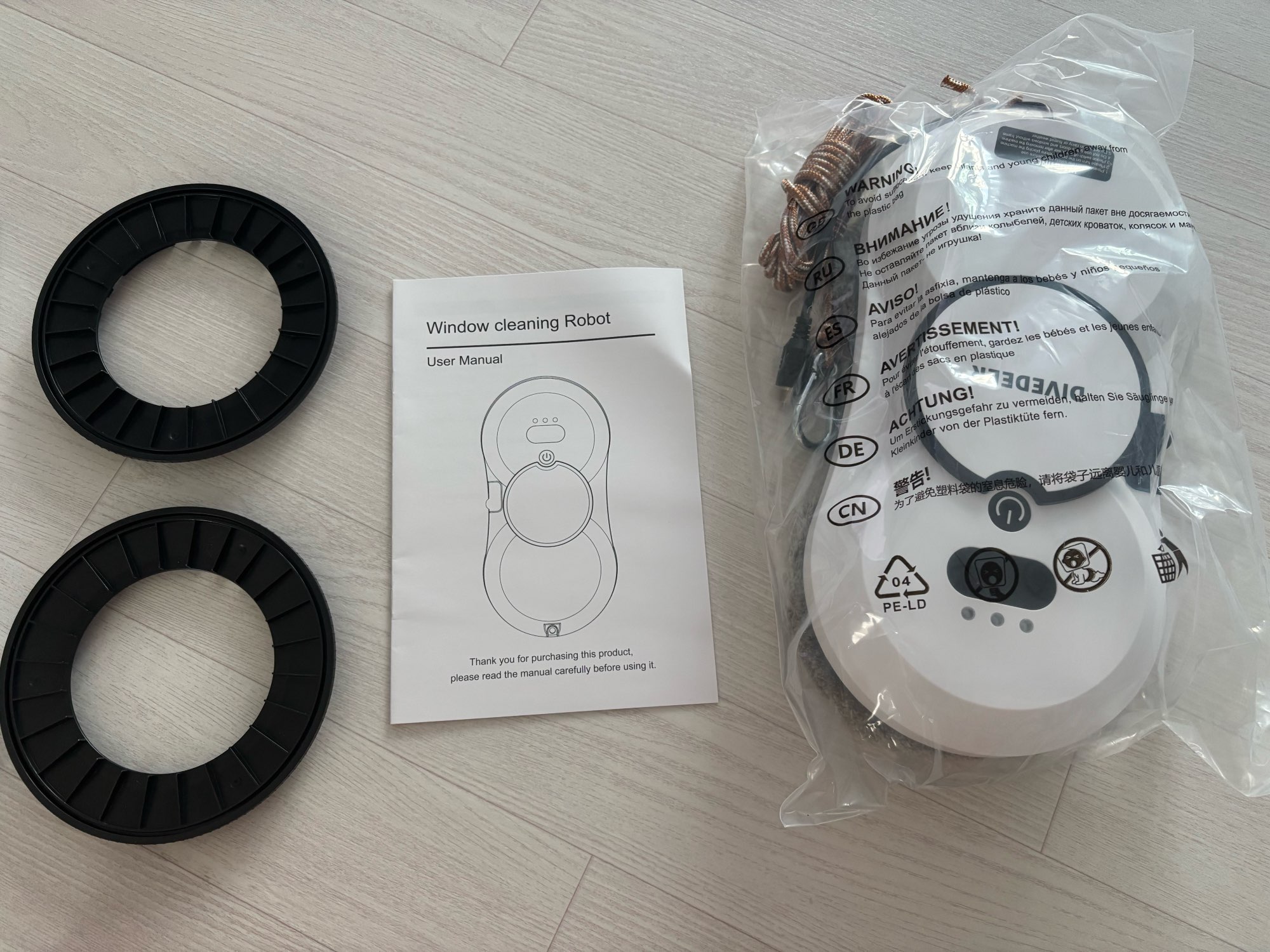 The product matches the description, the package arrived on time, did not communicate with the seller. The robot is simply a miracle, cleans windows without streaks. I recommend it!