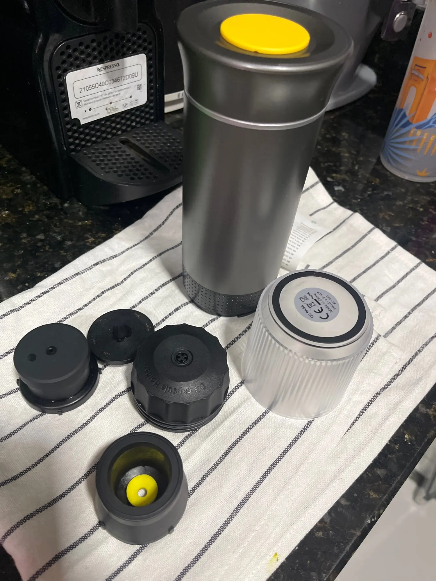 It arrived well packaged... I already have version 1 of this model, in this version 2 there is a display with temperature and battery charge, plus an additional 20ml capacity which helps a lot when using Nespresso and Dolce Gusto capsules. I leave mine inside the motorcycle, nothing better than a hot coffee anytime and anywhere we want.