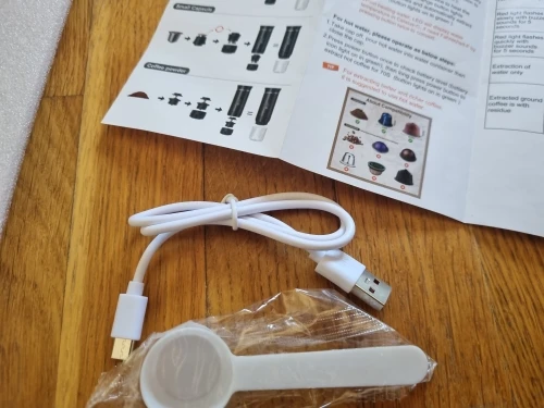 Superior item it is as described, quick delivery. It makes multiple coffee if you use hot water - otherwise 1 coffee garanteed. Charging time is about 2 hours. Amazing item.