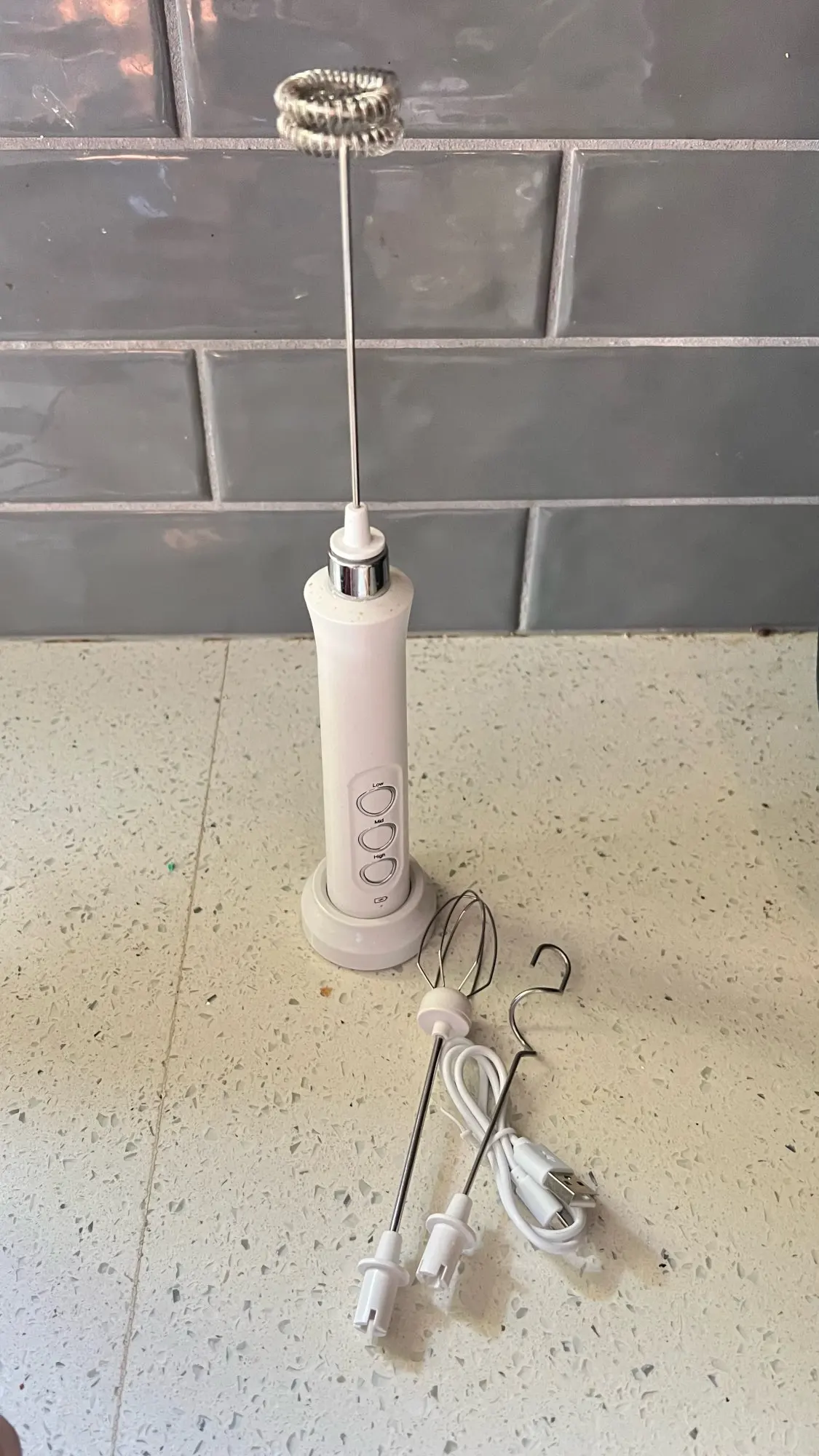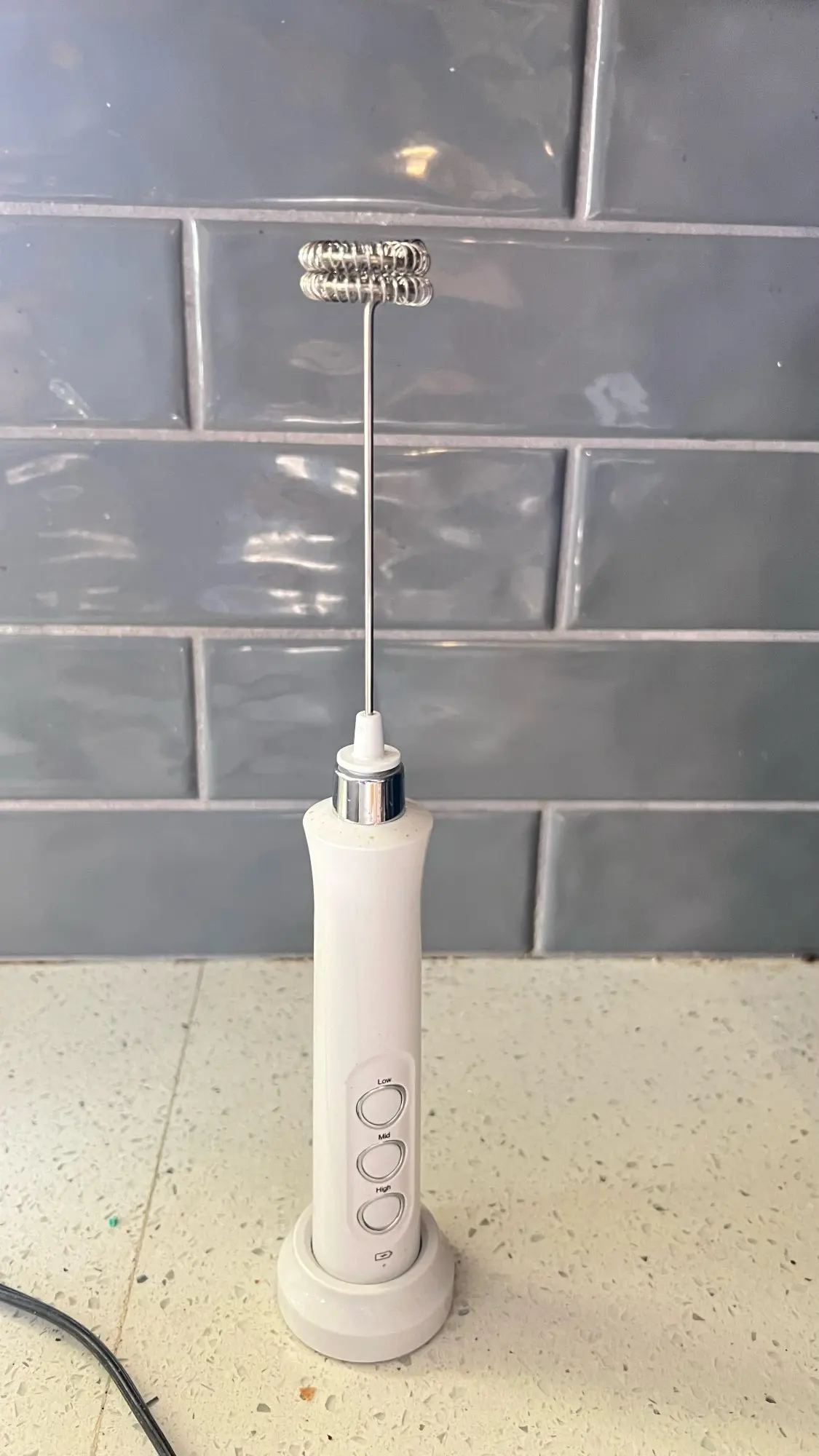 A great mini mixer that whips milk into thick dense foam in 20 seconds. The stand also serves as a charging station. A very convenient accessory. The whisk is powerful, convenient, and beautiful. Definitely recommend.